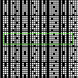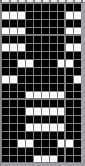 A 24X64 larger repeat with deeper folds, executable on a punch card machine, in which case black cells are left white, and all white cells are punched offers possibilities for color changes in sequences of even numbers of rows