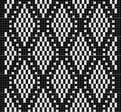 In planning programmed machine knit designs, no matter which cam carriage settings are chosen, unless the carriage(s) are set to knit, N is king, the black pixels and punched holes knit in pattern, the white pixels and unpunched areas do not.